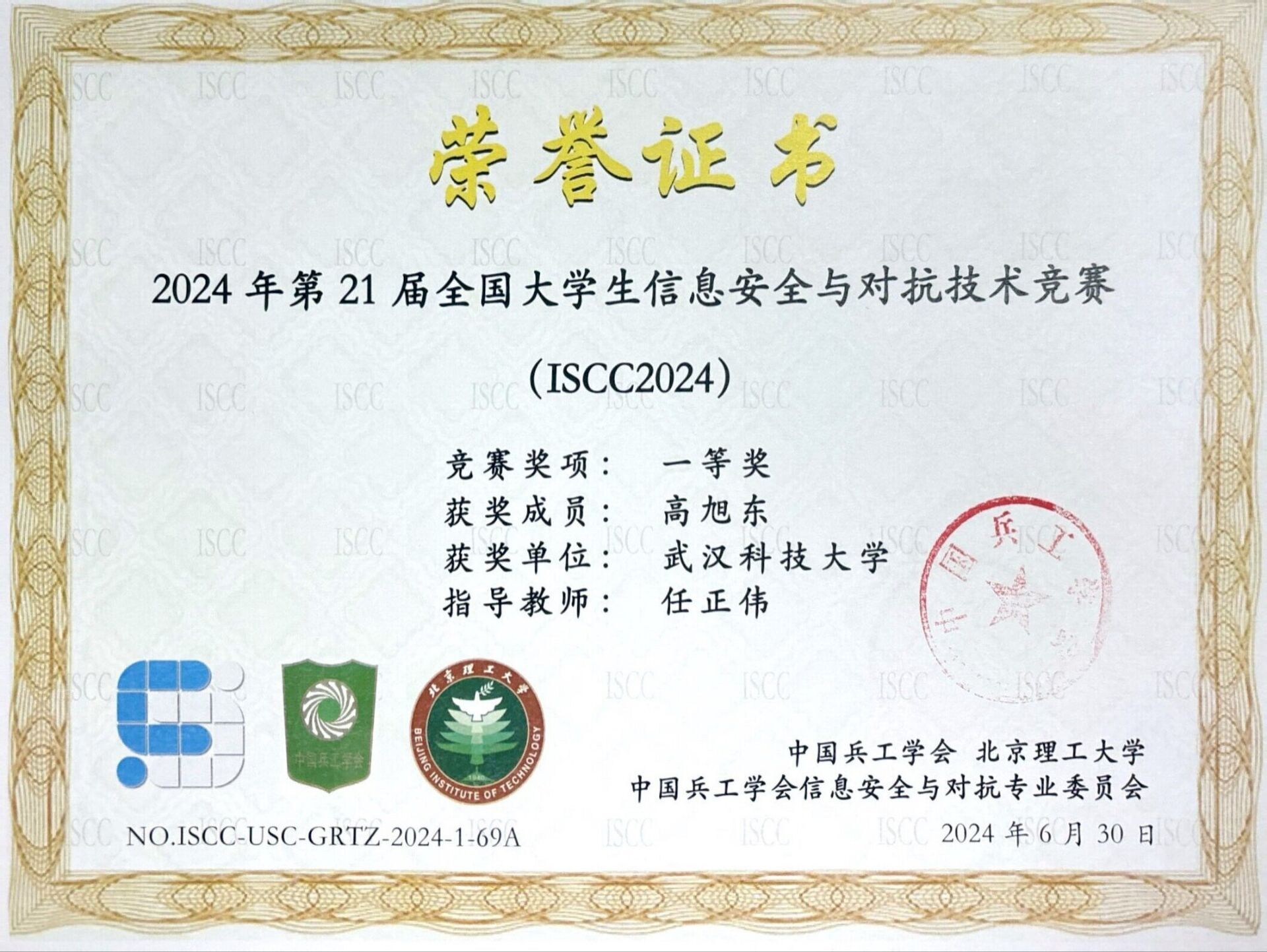 武科大网讯(通讯员刘晋瑜 朱授勋)为提升信息安全意识,实践信息安全技术,计算机学院信息安全协会积极组织学生参与第21届信息安全与对抗技术竞赛(ISCC2024)。7月18日竞赛结果正式公布,在白菜官网计算机学院副教授任正伟的带领下,共15人获得个人挑战赛国家奖项,其中一等奖9人,二等奖4人,三等奖2人;无限擂台赛共有9人获得国家奖项,其中一等奖2人,二等奖5人,三等奖2人。