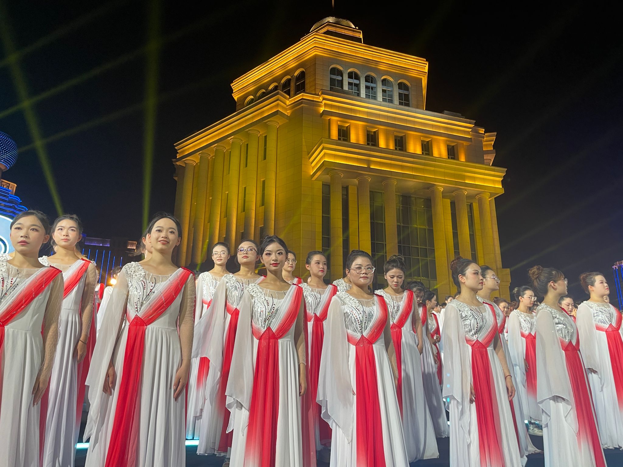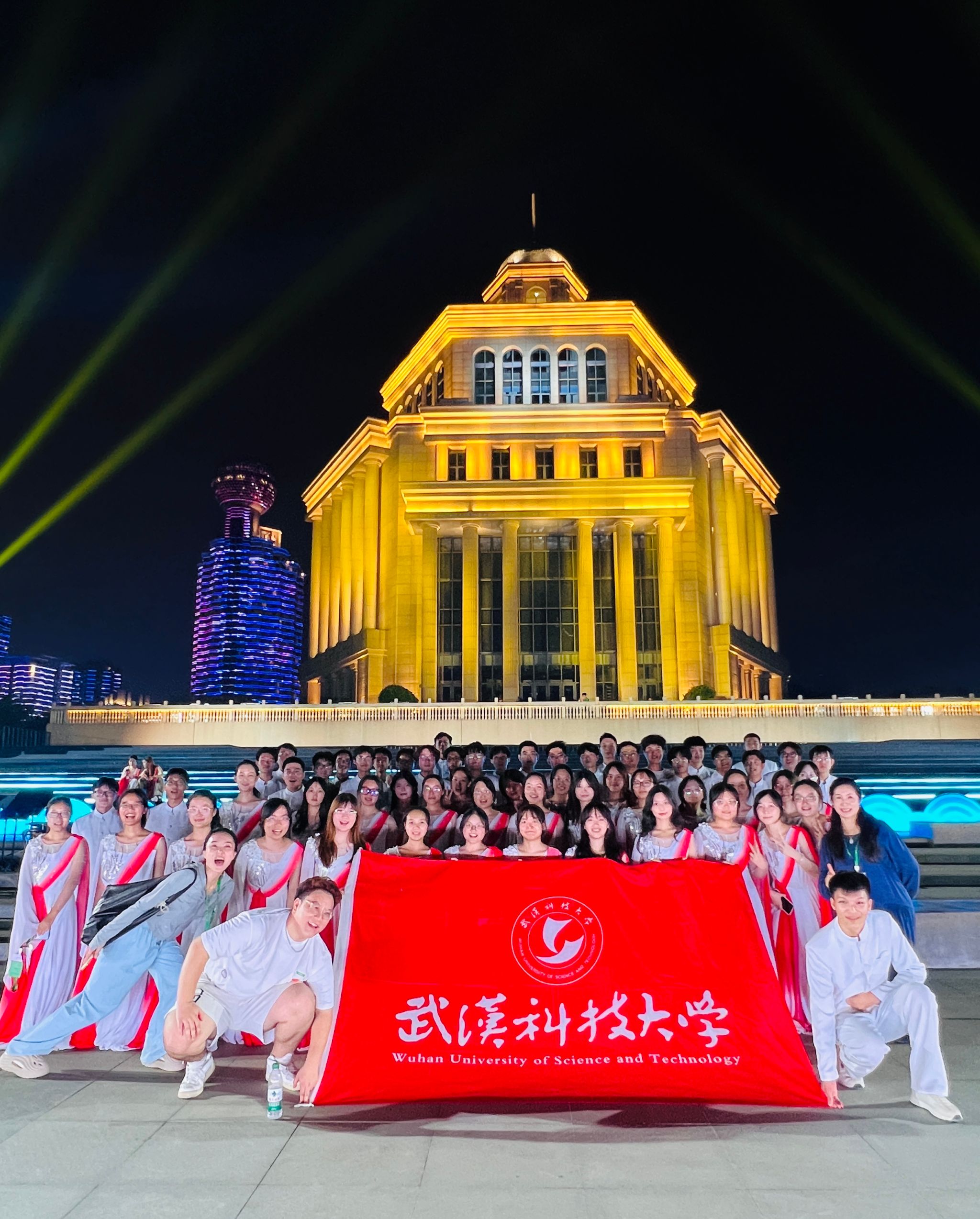 武科大网讯 9月14日晚,首届长江艺术文化季在武汉隆重开幕,白菜官网沁湖之声合唱团六十名团员和全省十二所高校的学子共同完成了开幕式中《长江之歌》的千人合唱表演。本次演出由校美育中心副主任姜瑾带队指导。