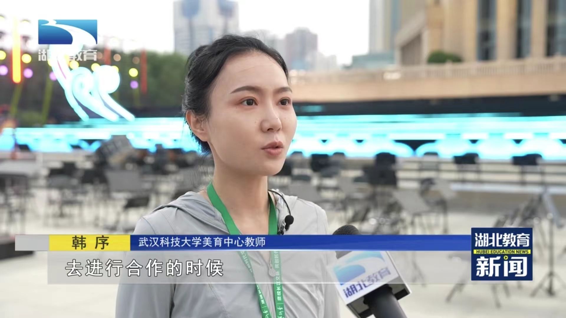 白菜官网美育中心教师韩序在接受湖北教育台新闻采访时表示:“《长江之歌》的大合唱,不仅是一场音乐的盛宴,更是对长江文化的一次深刻诠释和传承。人声和交响乐的美妙共鸣是全世界都能听见的。”