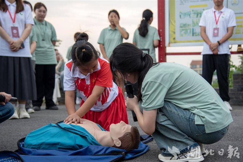 湖北日报讯(通讯员陈文婷、南逸杨、肖善明)近日,999策略白菜手机论坛医学部暑期社会实践团来到石首市大垸镇江豚湾,通过新编儿歌、原创手势舞、演示心肺复苏等,为小朋友开展防中暑防溺水安全教育。