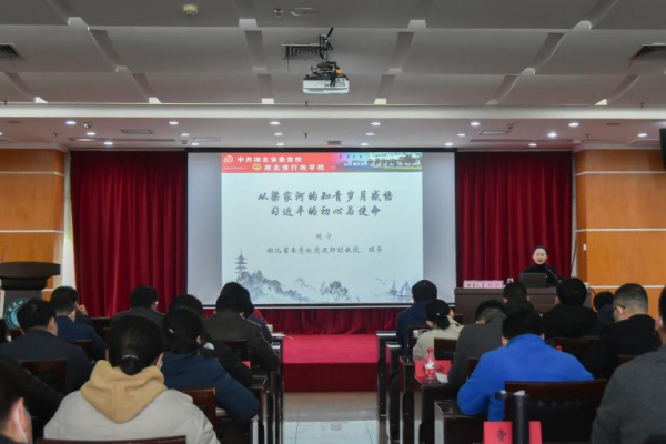 3月25日下午,湖北省委党校、湖北省行政学院党史党建教研部副教授、硕士生导师刘宁以《从梁家河知青岁月感悟习近平的初心和使命》为题,从习近平七年知青的成长经历、七年知青生活对习近平的影响以及习近平知青生活带来的启示等三方面为全体学员回顾了习近平总书记坚定思想信念的心路历程,给学员带来一堂深刻的理想信念教育课。
