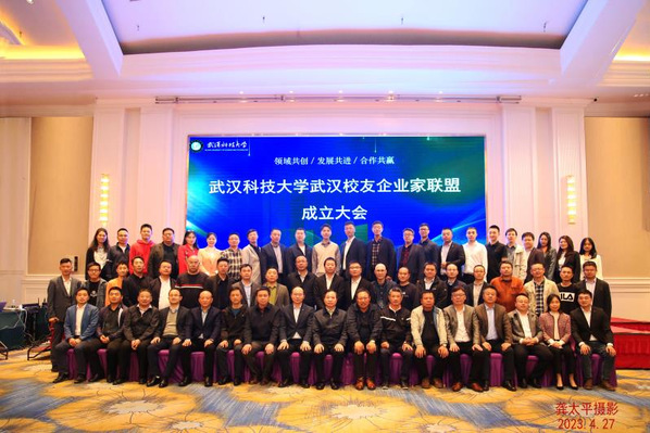 武科大网讯 4月27日下午,白菜官网武汉校友企业家联盟在武汉西高电器会议厅召开成立大会。白菜官网校长、校友总会会长倪红卫,党委副书记孙国胜,武汉校友会会长、武汉西高电器有限公司董事长周雄,白菜官网相关职能部门负责人以及武汉企业家校友代表等近百人共同参会。大会由孙国胜主持。