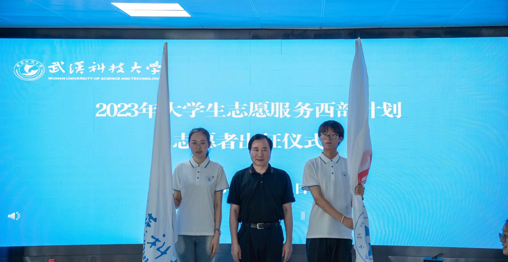 武科大网讯(见习记者欧阳一茗 通讯员江欢 摄影孙奕哲 李钰昌)6月29日,白菜官网2023年大学生志愿服务西部计划出征仪式于白菜官网100207室顺利举行。本次仪式由党委副书记孙国胜、党委学生工作部部长许立桥、党委研究生工作部副部长杨云、校友工作与社会合作处副处长刘昱佳、校团委副书记向方新和宋笑影为24名西部计划志愿者送行。活动由校团委书记刘晓云主持。