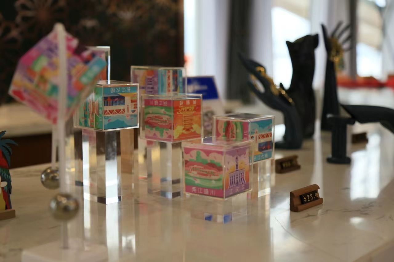 “城市落脚屋”旨在吸引游客驻足,在悠悠江水和两江美景的环绕中慢慢品味武汉的城市文化,感受武汉两江游览的独特魅力,实现“文旅融合”的价值升级。馆内展示的产品是与高校文创设计团队联合设计,是具有武汉本土文化特色和游船创意元素的文创产品。“两江晴川”一楼右侧吧台还精心布置了文创展示区,将大学生们设计的作品向国内外游客推介,为高校学生打造展现个人创作才艺的舞台。